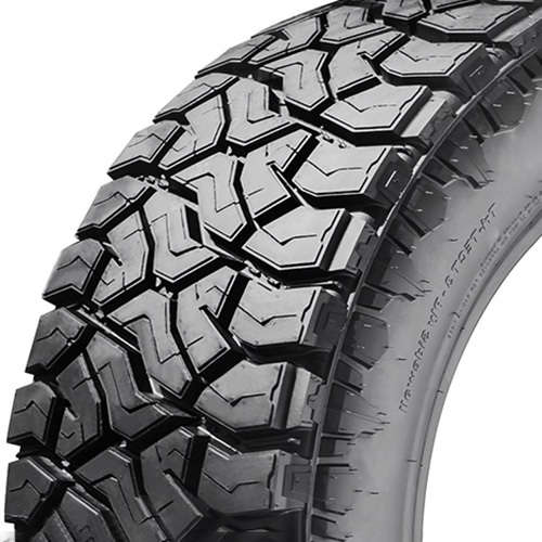 The Terra Hunter R/T has a well engineered tread pattern with all around high performance for the price point. Its closed center tread pattern consists of a large square divided into four pieces with a closed, tight knit center patch that reduces road noise compared to an MT tire. They still manage to include fairly large siping in between these pieces which provide solid traction.